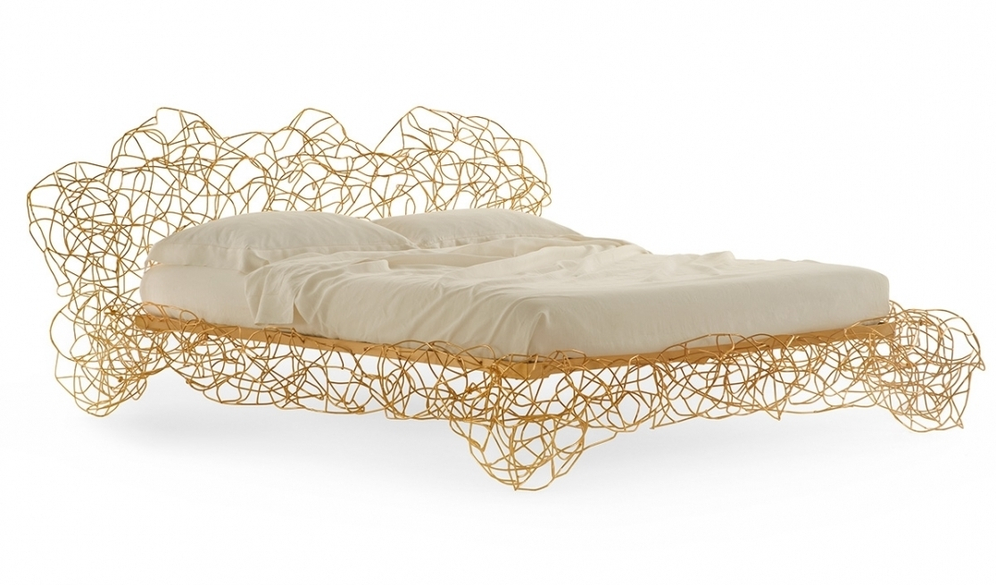 Quelle merveille! le lit double Corallo est un entrelacement manuel de fil d'acier incurvé à la main assemblé à travers des centaines de soudures. Un travail d'une telle complexité et d’une grande manualité artistique, en fait une pièce unique et précieuse, sa dorure contient une partie de 24Kt or. Corallo est le lit, Coral, le complément haut de gamme parmi la riche et précieuse collection signé par Edra, la marque leader dans le monde.