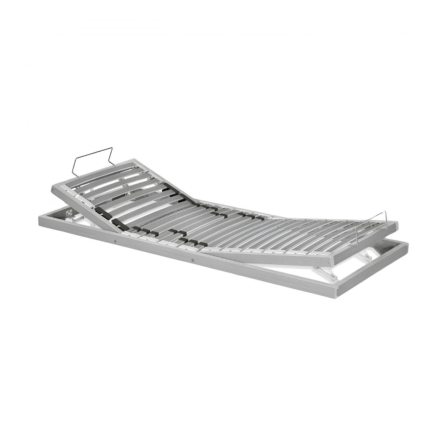 Sommier à lattes avec structure en bois latté antistatique, plan d’appui composé de 28 lattes produites avec système lamellaire d’une largeur réduite 38 mm hautement flexible. Montées sur des supports basculants spéciaux en caoutchouc à haute mémoire élastique avec système de réglage des rigidités dans la partie lombaire. Mécanisme de rehaussement manuel de la zone dorsale et des membres inférieurs avec possibilité de réglage sur différentes positions pour un confort maximal.