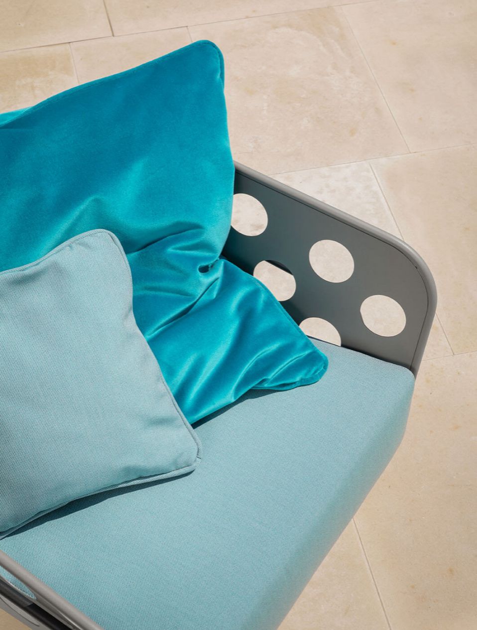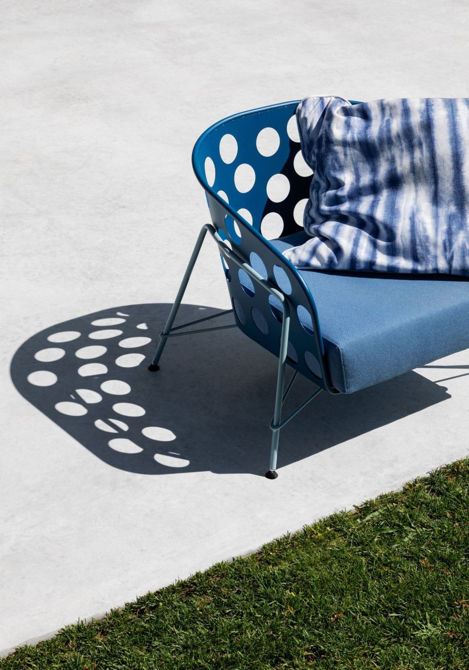 La poltrona Bolle outdoor è una versione più raccolta e intima del divano, fedele all’anima della collezione anche all’aperto. La conca forata che accoglie la seduta resta protagonista, leggera e attraversata da pieni e vuoti che dialogano con luce e aria. Sorrette da gambe sottili, le forme sembrano sospese, conservando quell’equilibrio delicato tra solidità e leggerezza. Accogliente, grafica e sorprendentemente ariosa, la poltrona Bolle outdoor è firmata Midj.