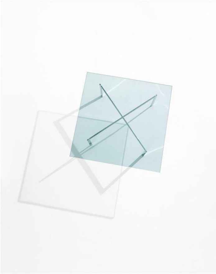 La forma essenziale e le linee pulite rendono il tavolino versatile: ideale come piano d’appoggio accanto a divani e poltrone, oppure come elemento decorativo in reception, lounge e spazi contract. Il cristallo trasparente mette in risalto la struttura metallica e consente al design di emergere senza appesantire visivamente la stanza.