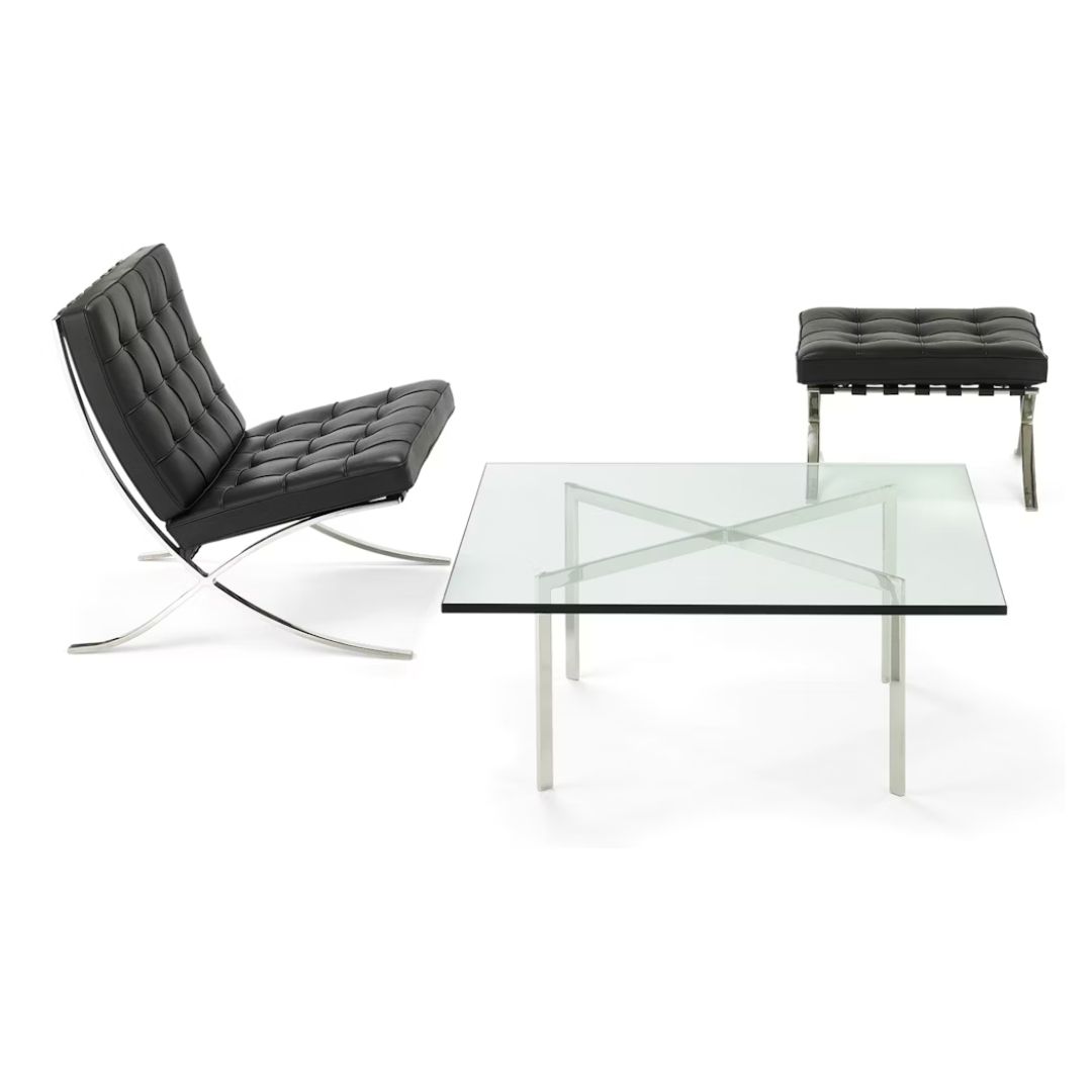 Il tavolino Barcelona di Knoll è un pezzo iconico del design moderno, perfetto per completare salotti eleganti e raffinati. Ispirato al celebre stile della poltrona Barcelona di Mies van der Rohe e Lilly Reich, questo tavolino combina struttura cromata lucida e piano in cristallo trasparente, creando un effetto leggero e contemporaneo che si integra armoniosamente in qualsiasi ambiente.