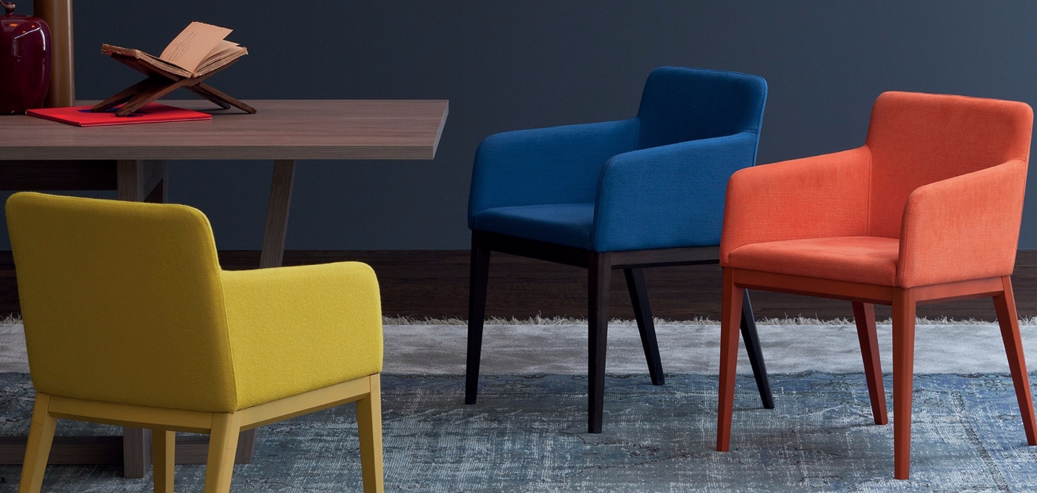Design moderno e linee classiche: la sedia Candy è adatta ad accostamenti in qualunque stile d'arredamento. Seduta con struttura in legno e rivestimento; la sedia Candy, da Novamobil.