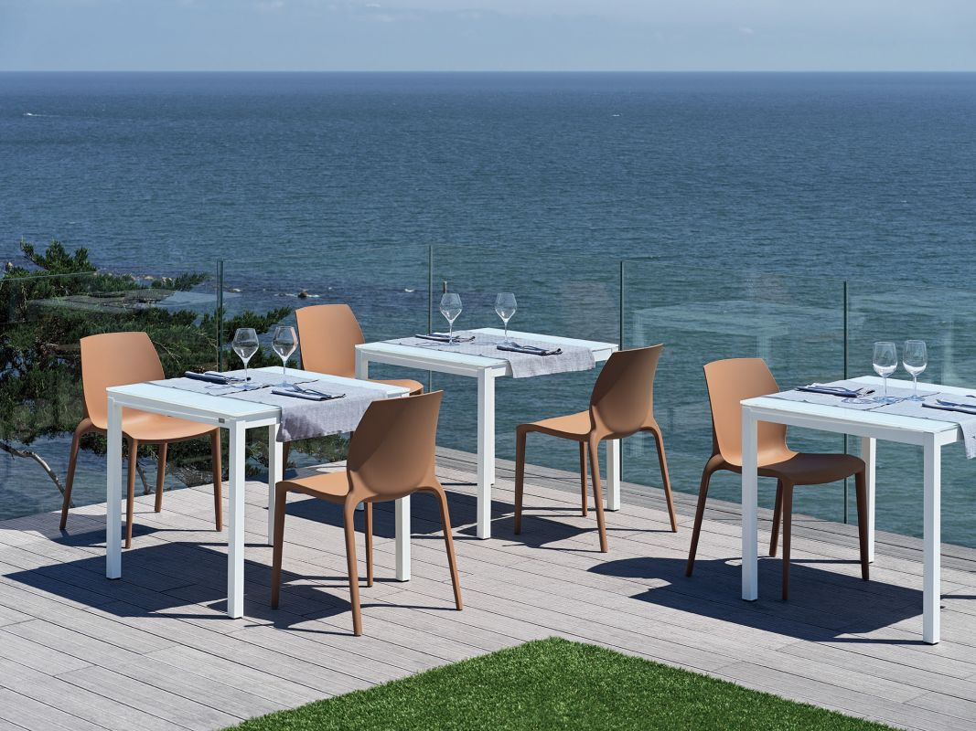Hidra di Bontempi è una sedia impilabile. Il suo design dalla linea semplice ed essenziale ė di facile adattabilità, la seduta ampia e comoda è disponibile in polipropilene.