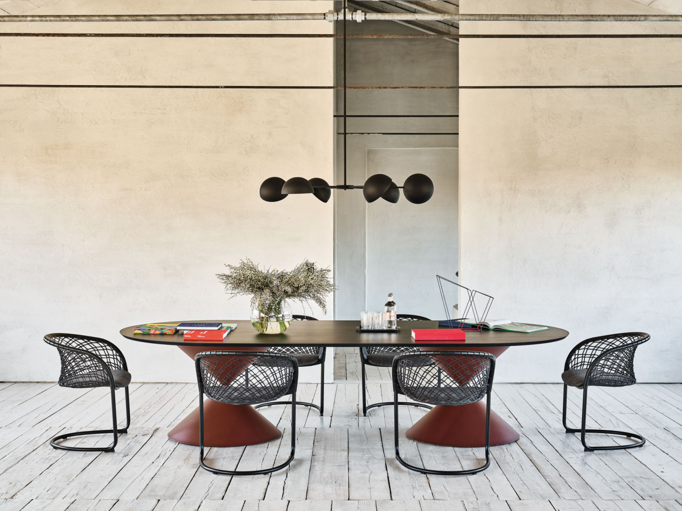 Il tavolo Clessidra di Midj interpreta l’eleganza contemporanea attraverso linee fluide e materiali pregiati. La caratteristica base scultorea sostiene un piano ellittico disponibile in legno, vetro, marmo o cristalceramica, offrendo infinite possibilità di personalizzazione. Perfetto per sale da pranzo o spazi professionali, combina estetica e funzionalità in un equilibrio raffinato.