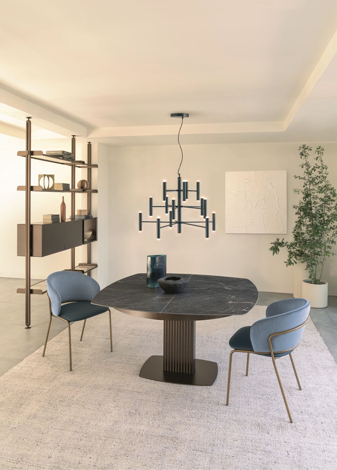 Il Tavolo Onda di Riflessi è un complemento d’arredo elegante e moderno, pensato per valorizzare ogni sala da pranzo con stile e personalità. Il suo design fluido e armonioso richiama il movimento dell’acqua, conferendo leggerezza visiva e un carattere distintivo che rende Onda protagonista dell’ambiente senza appesantirlo.