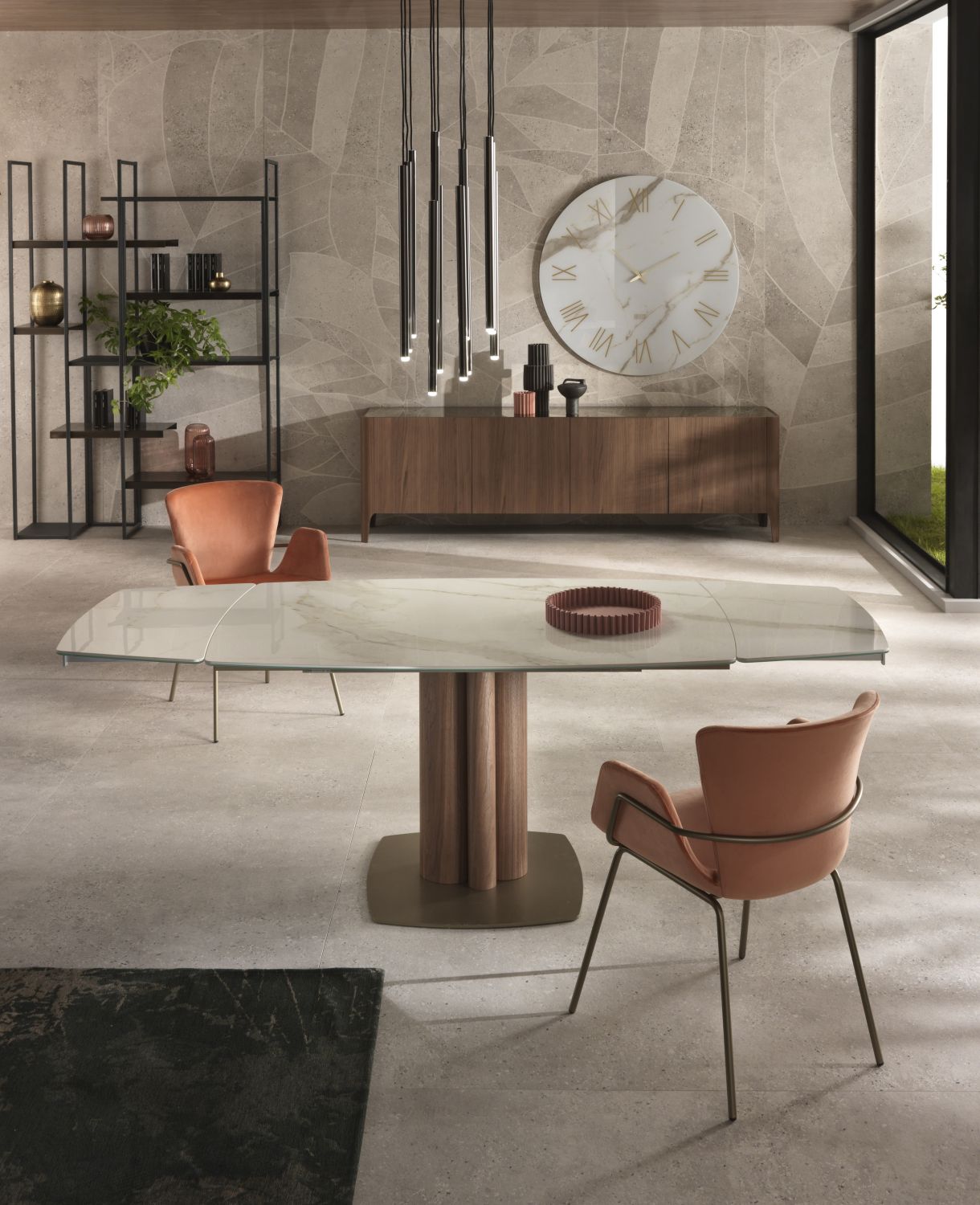 Tower Riflessi - Tavolo con piano in ceramica allungabile