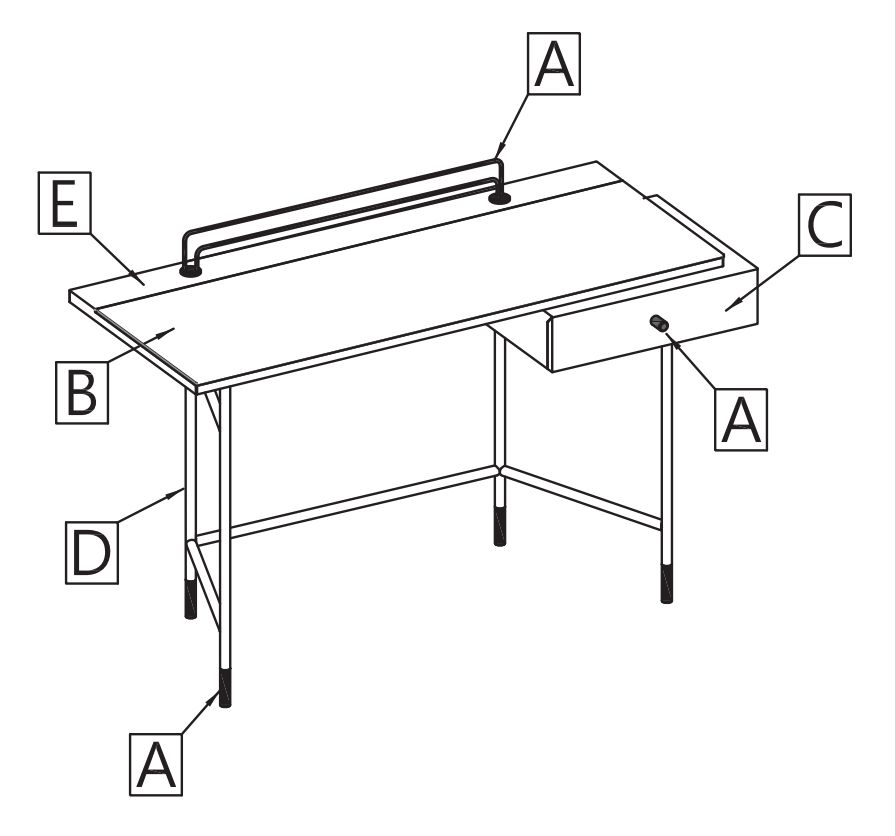 Finitura dettagli decorativi - piedini, maniglia cassetto e portacarte (A):
