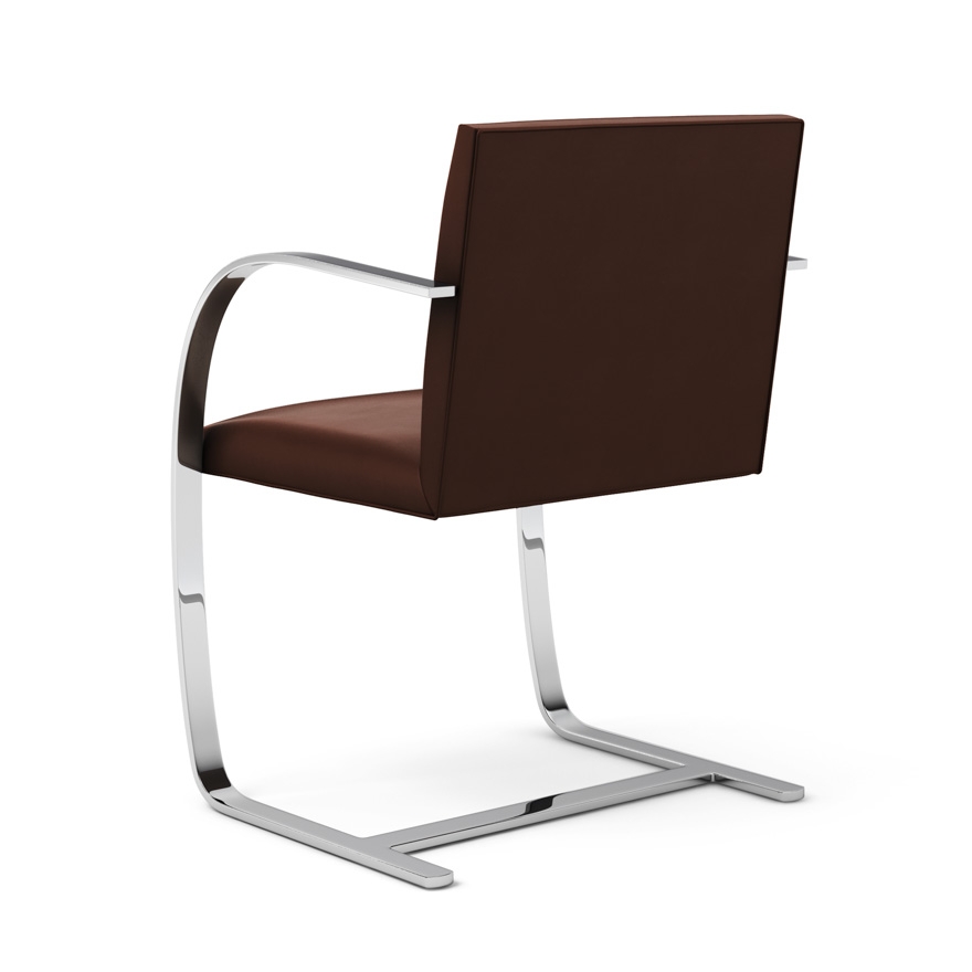 La sedia Brno, un'icona del design del XX secolo. Brno è una sedia con braccioli, rivestita con un'ampia gamma di pelli di Spinneybeck® e struttura in acciaio inox 304 lucidato a mano. Nessuna connessione visibile tra sedile e telaio. Brno ha la certificazione GREENGUARD Indoor Certified® per i prodotti a bassa emissione.